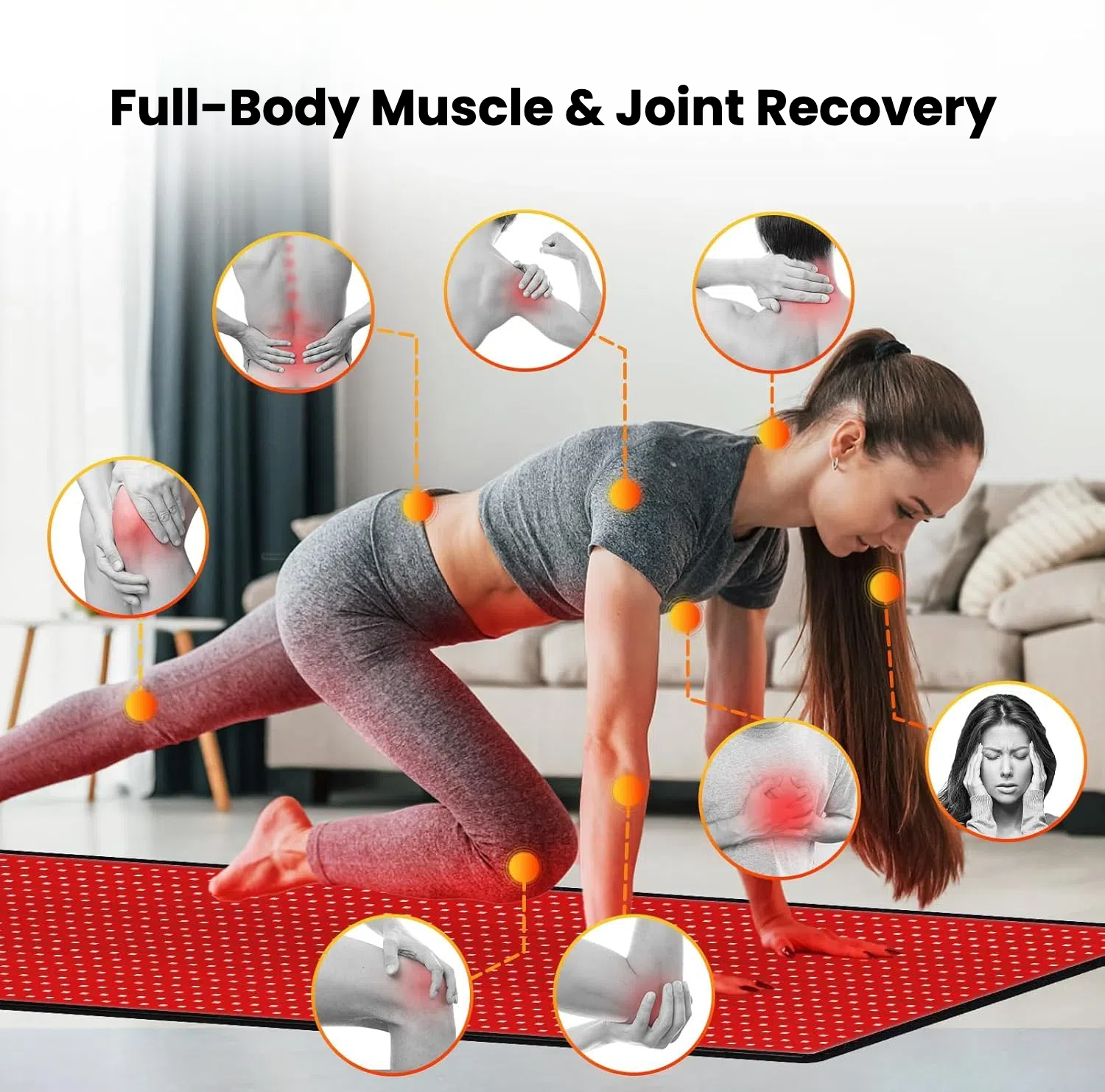 Designed in three sizes (M/L/XL), this advanced therapy mat integrates 1,998–3,240 premium 3-in-1 LEDs, featuring 850nm near-infrared (invisible) and 660nm red light (visible) in a 2:1 golden ratio. Clinically validated for enhanced recovery, it can penetrate 40% deeper than standard mats.