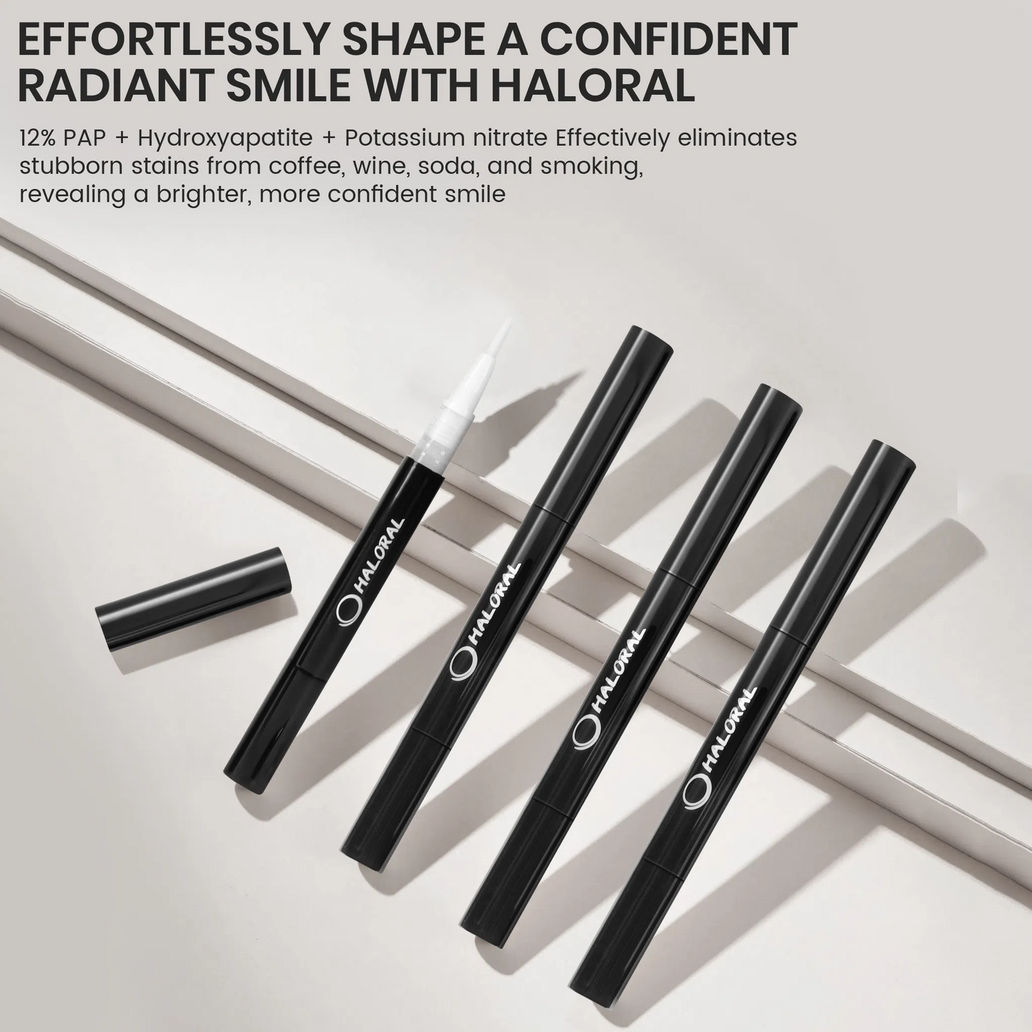 The Halo PAP+ Whitening Pen includes Sorbitol, Aqua, Phthalimidoperoxycaproic Acid (PAP), Propylene Glycol, Glycerin, Hydroxyapatite, Potassium Nitrate, Cellulose Gum, Hydroxyethylcellulose, Xanthan Gum, Menthol, Sodium Saccharin, Methylparaben, Chamomilla Recutita Extract, Aloe Barbadensis Leaf Juice, Sodium Bicarbonate, Punica Granatum Seed Extract, and Propylparaben.