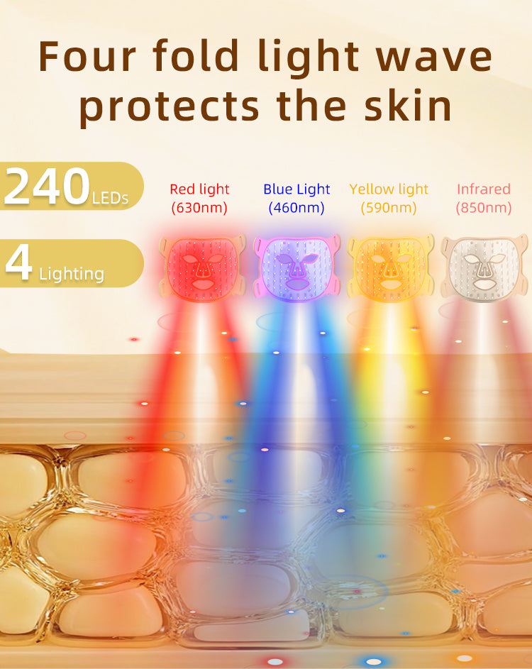 The Haloral LED Mask harnesses the power of four therapeutic wavelengths to deliver targeted and effective skincare solutions.