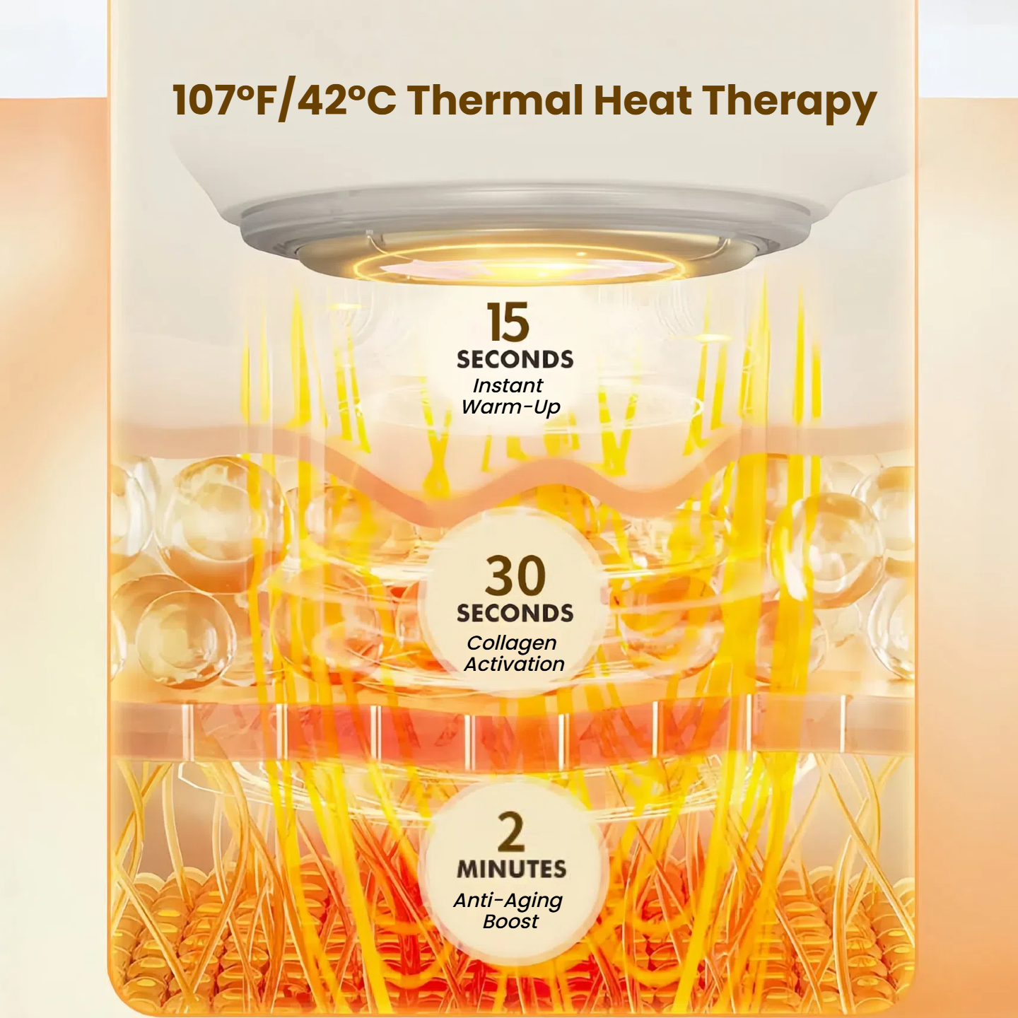 At 107°F (42°C), soothing heat opens pores and boosts product absorption, stimulating collagen production to fight signs of aging and reveal youthful, radiant skin.